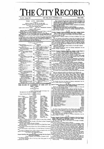 The City Record newspaper publishes notices which includes but is not limited to: public hearings and meetings, public auctions and sales, solicitations and awards and official rules proposed and adopted by city agencies. This is the City Record Newspaper for November 29, 1917.
