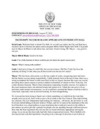 Press Release: TRANSCRIPT: MAYOR DE BLASIO APPEARS LIVE ON INSIDE CITY HALL