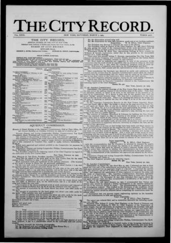 The City Record newspaper publishes notices which includes but is not limited to: public hearings and meetings, public auctions and sales, solicitations and awards and official rules proposed and adopted by city agencies. This is the City Record Newspaper for March 07, 1903.
