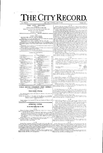The City Record newspaper publishes notices which includes but is not limited to: public hearings and meetings, public auctions and sales, solicitations and awards and official rules proposed and adopted by city agencies. This is the City Record Newspaper for June 18, 1910.