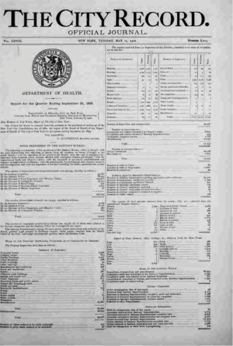 The City Record newspaper publishes notices which includes but is not limited to: public hearings and meetings, public auctions and sales, solicitations and awards and official rules proposed and adopted by city agencies. This is the City Record Newspaper for May 15, 1900.