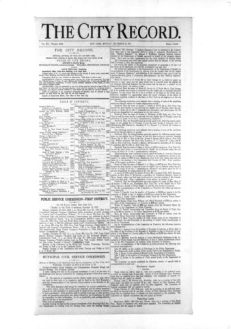 The City Record newspaper publishes notices which includes but is not limited to: public hearings and meetings, public auctions and sales, solicitations and awards and official rules proposed and adopted by city agencies. This is the City Record Newspaper for December 22, 1913.