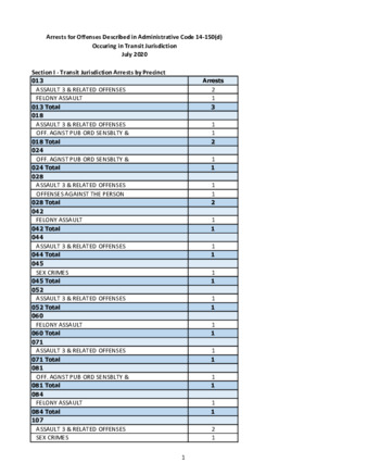 Pursuant to Admin Code Sect. 14-150(d), this monthly report contains information on complaints and arrests for violent felony offenses, assault, sex offenses, disorderly conduct, harassment, aggravated harassment, and offenses against public sensibilities that occurred in transit
