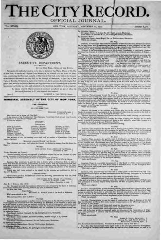 The City Record newspaper publishes notices which includes but is not limited to: public hearings and meetings, public auctions and sales, solicitations and awards and official rules proposed and adopted by city agencies. This is the City Record Newspaper for November 10, 1900.