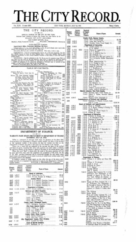 The City Record newspaper publishes notices which includes but is not limited to: public hearings and meetings, public auctions and sales, solicitations and awards and official rules proposed and adopted by city agencies. This is the City Record Newspaper for July 26, 1915.