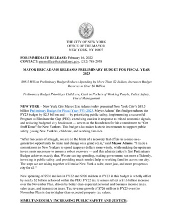 MAYOR ERIC ADAMS RELEASES PRELIMINARY BUDGET FOR FISCAL YEAR 2023