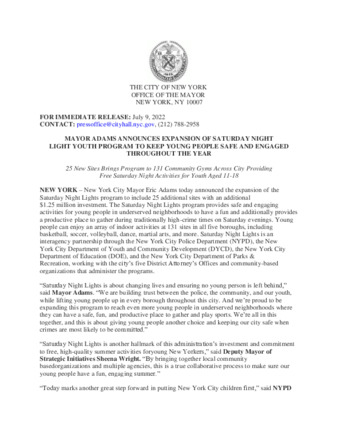 MAYOR ADAMS ANNOUNCES EXPANSION OF SATURDAY NIGHT LIGHT YOUTH PROGRAM TO KEEP YOUNG PEOPLE SAFE AND ENGAGED THROUGHOUT THE YEAR