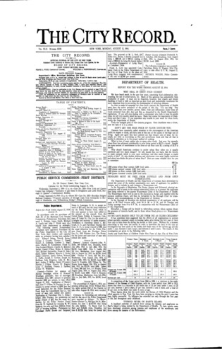 The City Record newspaper publishes notices which includes but is not limited to: public hearings and meetings, public auctions and sales, solicitations and awards and official rules proposed and adopted by city agencies. This is the City Record Newspaper for August 31, 1914.