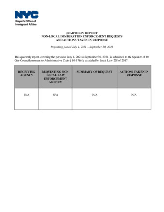 Local Law 228 Quarterly Report: Non-Local Immigration Enforcement Requests And Actions Taken In Response FY2022 Q1 (July 1, 2021 - September 30, 2021)
