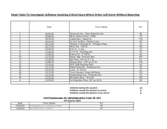 Pursuant to Admin Code Sect. 14-153(c), this quarterly report contains 1) the number of leaving the scene incidents with a critical injury; 2) the number of such incidents the department closed to arrest and closed without an arrest; and 3) the number of notices of violation issued for 19-191