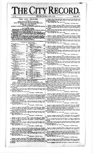The City Record newspaper publishes notices which includes but is not limited to: public hearings and meetings, public auctions and sales, solicitations and awards and official rules proposed and adopted by city agencies. This is the City Record Newspaper for April 11, 1912.