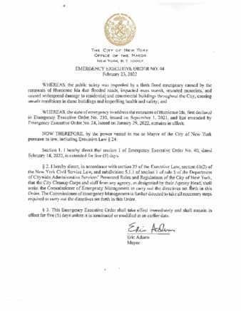 Emergency Executive Order no. 44 extends Emergency Executive Order No. 40, dated February 18, 2022, by 5 days. It is related to the City's response to Hurricane Ida.