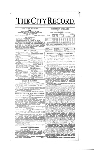 The City Record newspaper publishes notices which includes but is not limited to: public hearings and meetings, public auctions and sales, solicitations and awards and official rules proposed and adopted by city agencies. This is the City Record Newspaper for February 11, 1918.