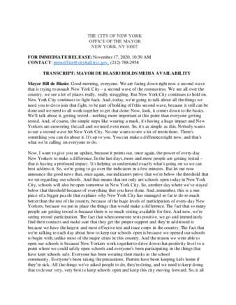 Mayor's Press Release: MAYOR DE BLASIO HOLDS MEDIA AVAILABILITY