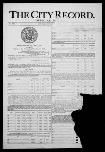 The City Record newspaper publishes notices which includes but is not limited to: public hearings and meetings, public auctions and sales, solicitations and awards and official rules proposed and adopted by city agencies. This is the City Record Newspaper for January 04, 1902.