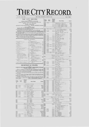 The City Record newspaper publishes notices which includes but is not limited to: public hearings and meetings, public auctions and sales, solicitations and awards and official rules proposed and adopted by city agencies. This is the City Record Newspaper for August 13, 1913.