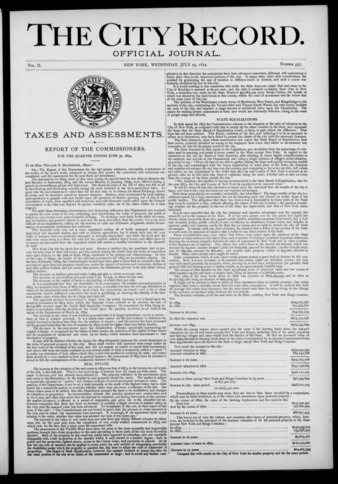 The City Record Newspapers publishes notices which include but is not limited to: public hearings and meetings, public auctions and sales, solicitations and awards and official rules proposed and adopted by city agencies. This is the City Record Newspaperss for July 1874.