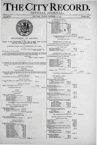 The City Record newspaper publishes notices which includes but is not limited to: public hearings and meetings, public auctions and sales, solicitations and awards and official rules proposed and adopted by city agencies. This is the City Record Newspaper for November 27, 1900.
