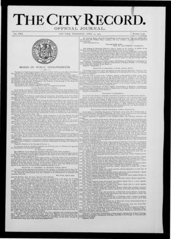 The City Record newspaper publishes notices which includes but is not limited to: public hearings and meetings, public auctions and sales, solicitations and awards and official rules proposed and adopted by city agencies. This is the City Record Newspaper for April 10, 1901.