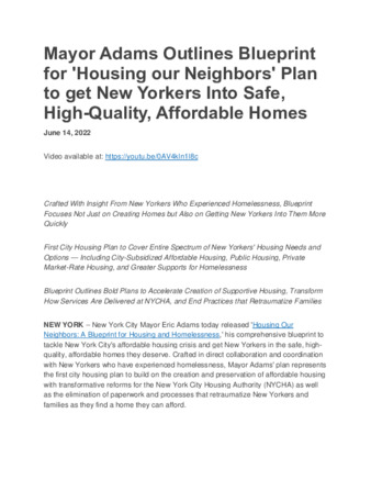 | User Ciara Collins has attached Mayor_s_Press_Office_June_14d_2022.pdf to Mayor Adams Outlines Blueprint for 'Housing our Neighbors' Plan to get New Yorkers Into Safe, High-Quality, Affordable Homes |