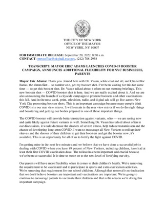 | User Ciara Collins has attached Mayor_s_Press_Office_Sept_20b_2022.pdf to TRANSCRIPT: MAYOR ERIC ADAMS LAUNCHES COVID-19 BOOSTER CAMPAIGN, ANNOUNCES ADDITIONAL FLEXIBILITY FOR NYC BUSINESSES, PARENTS |