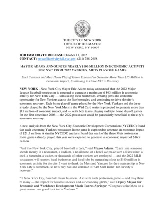 | User Ciara Collins has attached Mayor_s_Press_Office_Oct_11a_2022.pdf to MAYOR ADAMS ANNOUNCES NEARLY $100 MILLION IN ECONOMIC ACTIVITY FOR NYC FROM 2022 YANKEES, METS PLAYOFF GAMES |