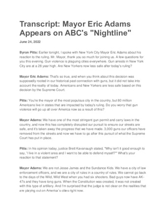 | User Ciara Collins has attached Mayor_s_Press_Office_June_24c_2022.pdf to Transcript: Mayor Eric Adams Appears on ABC's "Nightline" |